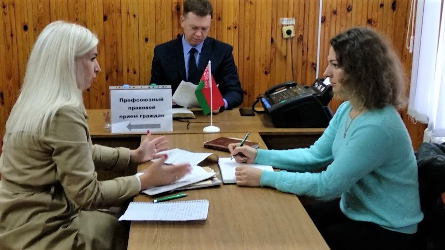 Профсоюзный прием провели в филиале Высоковского ДРСУ-137, прорабский участок №3 г.Каменца, главный правовой инспектор Ольга Ковалёк и прокурор района Олег Леванчук.