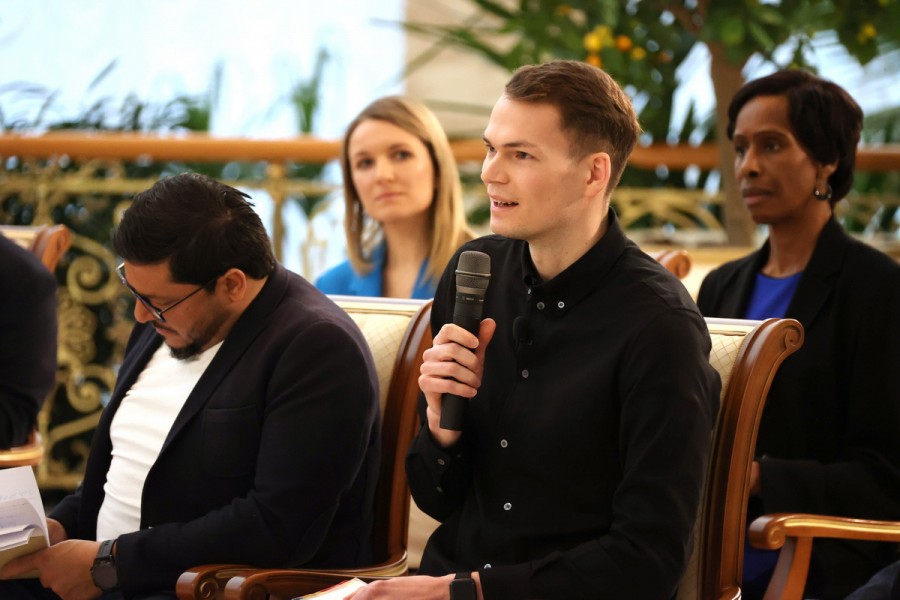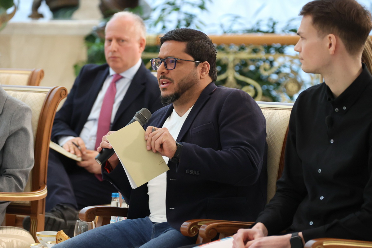 Мероприятие незапланированное, в графике появилось спонтанно. Президент откликнулся на просьбы приехавших зарубежных гостей – согласился на разговор.